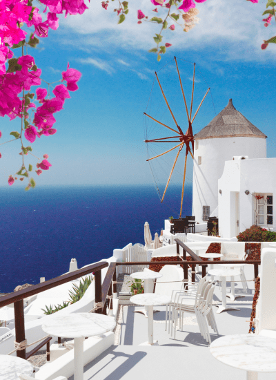 - Return flight tickets to Santorini